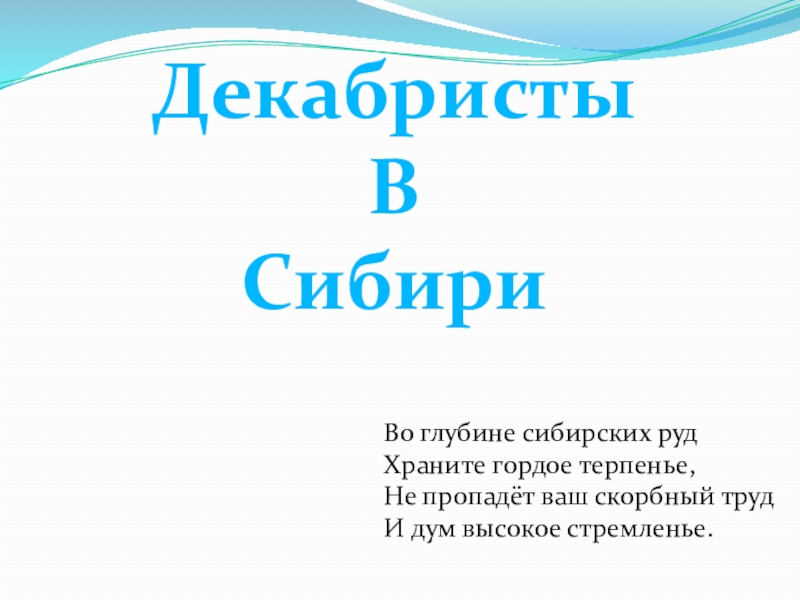 Слайд 22Трудами декабристов прирастала к России Сибирь с её несметными богатствами. Они