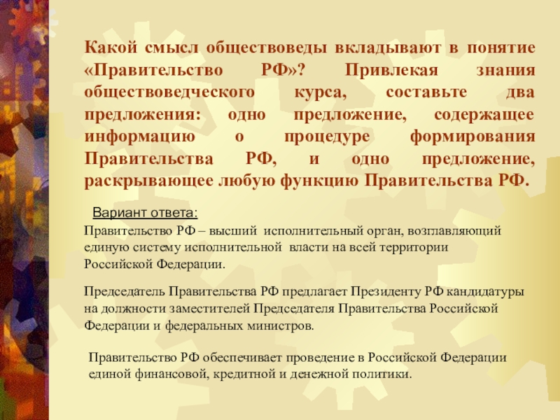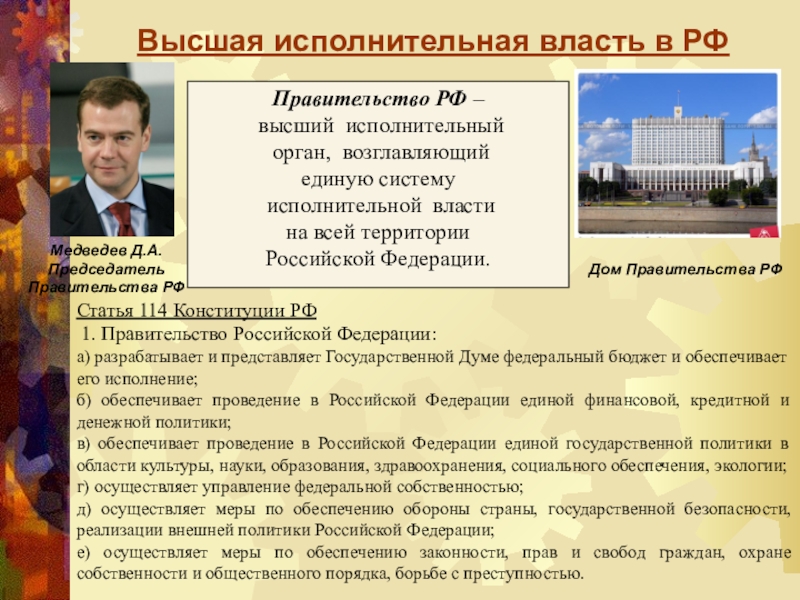 Правительство РФ – высший исполнительный орган, возглавляющий