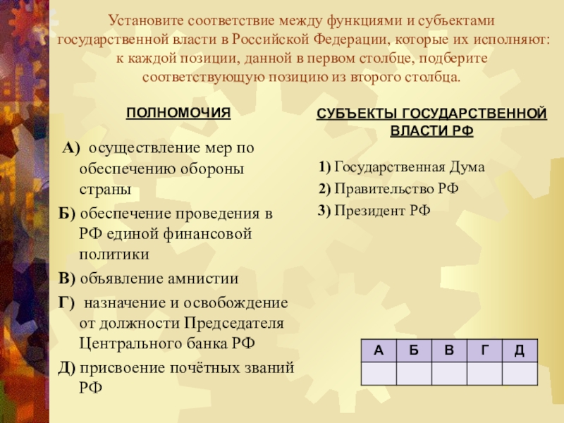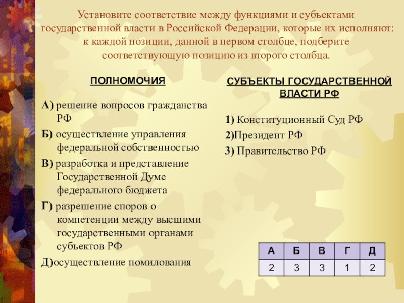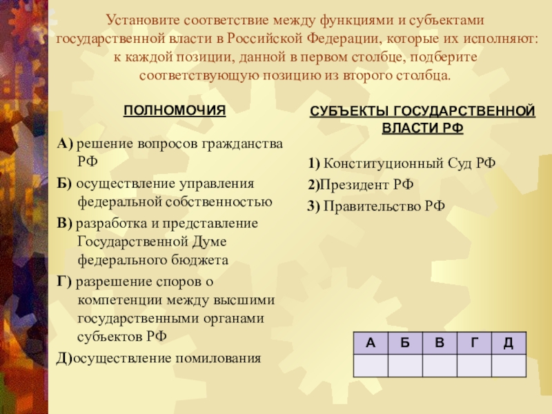 СУБЪЕКТЫ ГОСУДАРСТВЕННОЙ ВЛАСТИ РФ