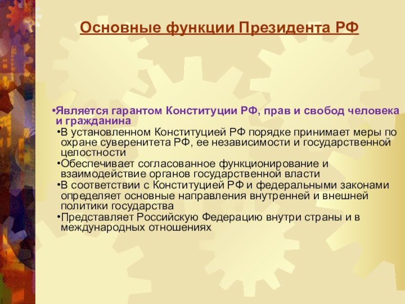 д) осуществляет меры по обеспечению обороны страны, государственной безопасности, реализации внешней политики Российской Федерации;