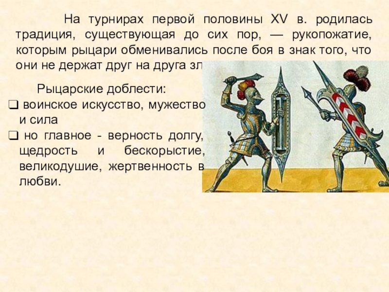 но главное - верность долгу, щедрость и бескорыстие, великодушие, жертвенность в любви.