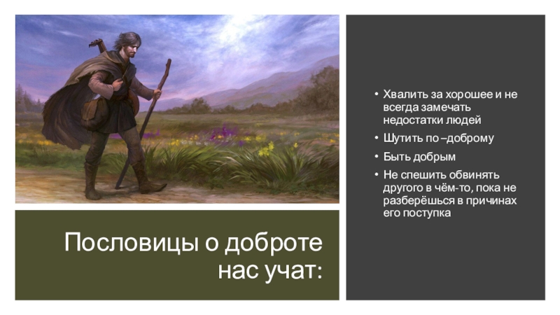 «А куда ни пойдёте, где ни остановитесь в пути, везде накормите и напоите всякого просящего. Вы же, поступая хорошо, не ленитесь на всё доброе, не пройдите мимо человека, не приветствуя его, а скажите каждому при встрече доброе слово», - «Поучение Владимира Мономаха» около 1117года