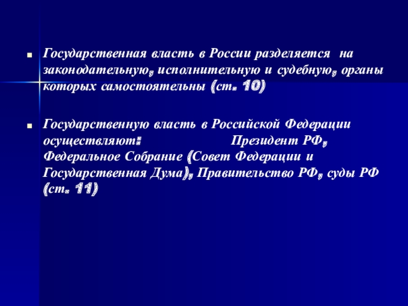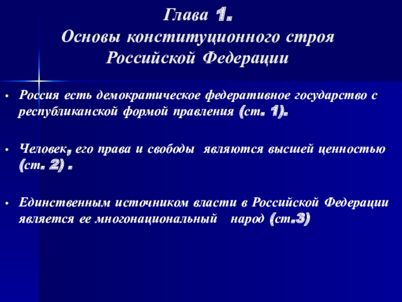 Россия есть демократическое федеративное государство с республиканской формой правления (ст. 1).
