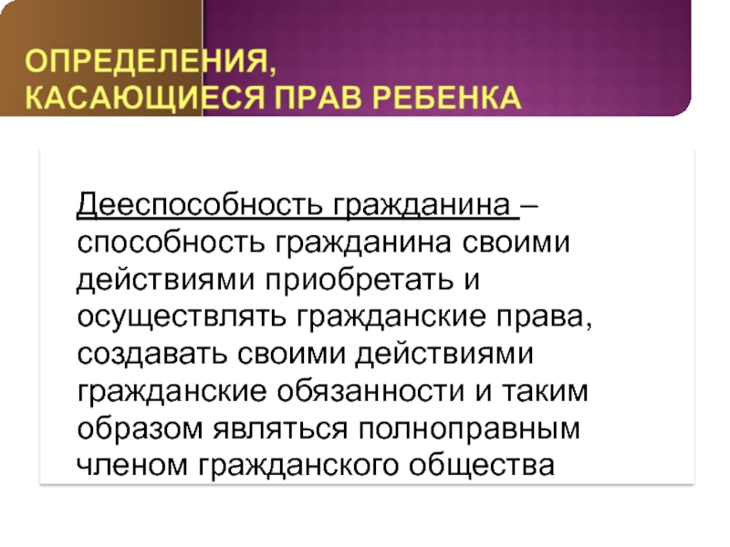права, создавать своими действиями гражданские обязанности и таким образом являться полноправным членом гражданского общества