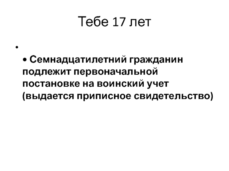 • Семнадцатилетний гражданин подлежит первоначальной постановке на воинский учет