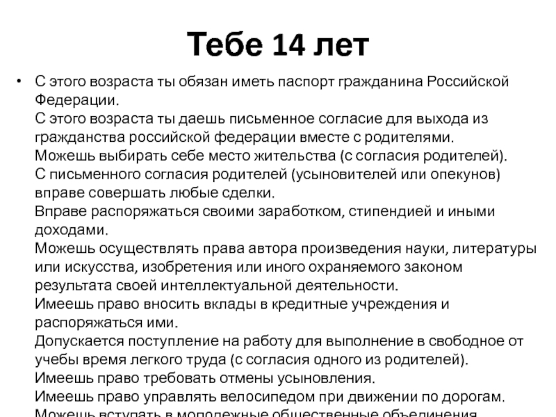 С этого возраста ты даешь письменное согласие для выхода из гражданства российской федерации вместе с родителями.