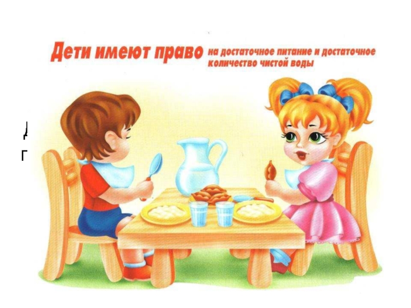 Слайд 21Дети имеют право на достаточное питание и достаточное количество чистой воды