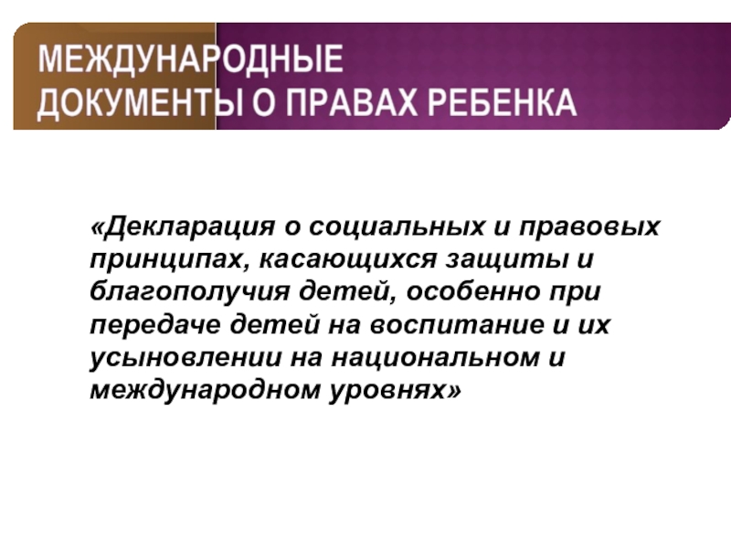 Слайд 5«Декларация о социальных и правовых принципах, касающихся защиты и благополучия детей,