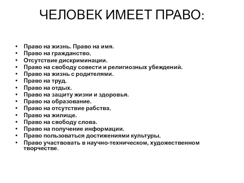 Слайд 2ЧЕЛОВЕК ИМЕЕТ ПРАВО: