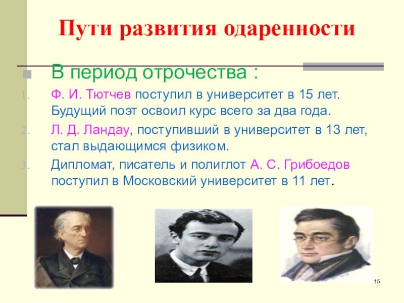 Л. Д. Ландау, поступивший в университет в 13 лет, стал выдающимся физиком.