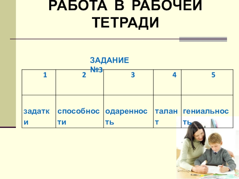 Слайд 29РАБОТА В РАБОЧЕЙ ТЕТРАДИ
