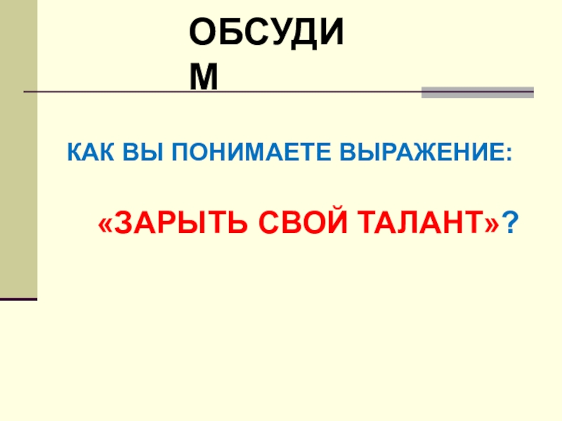 «ЗАРЫТЬ СВОЙ ТАЛАНТ»?