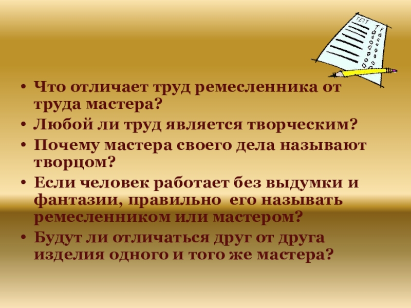 3. Будут ли отличаться друг от друга изделия одного и того же мастера?
