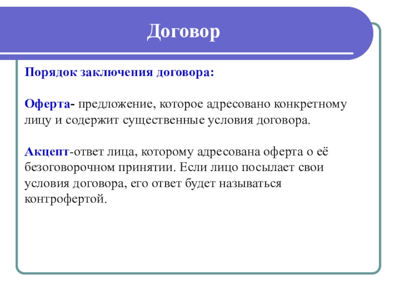 договор-соглашение двух или более лиц, санкционирующее возникновение, изменение или прекращение правоотношений