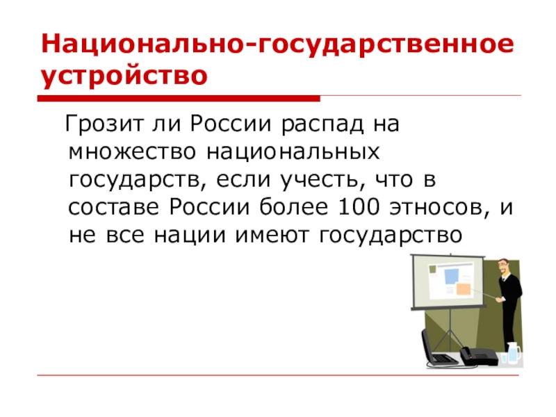 Национально-государственное устройство  Грозит ли России распад на множество национальных государств, если учесть, что в составе России