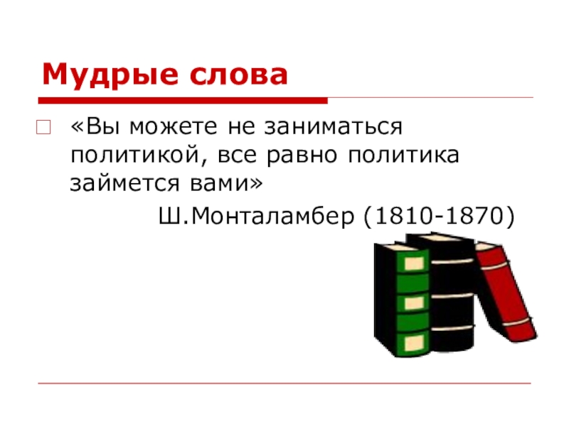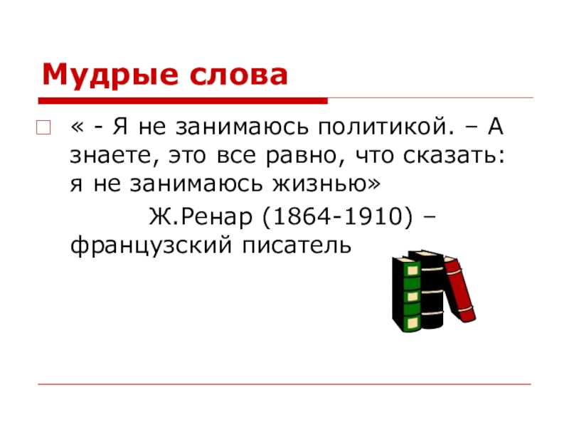 Мудрые слова« - Я не занимаюсь политикой. – А знаете, это все равно, что сказать: я не