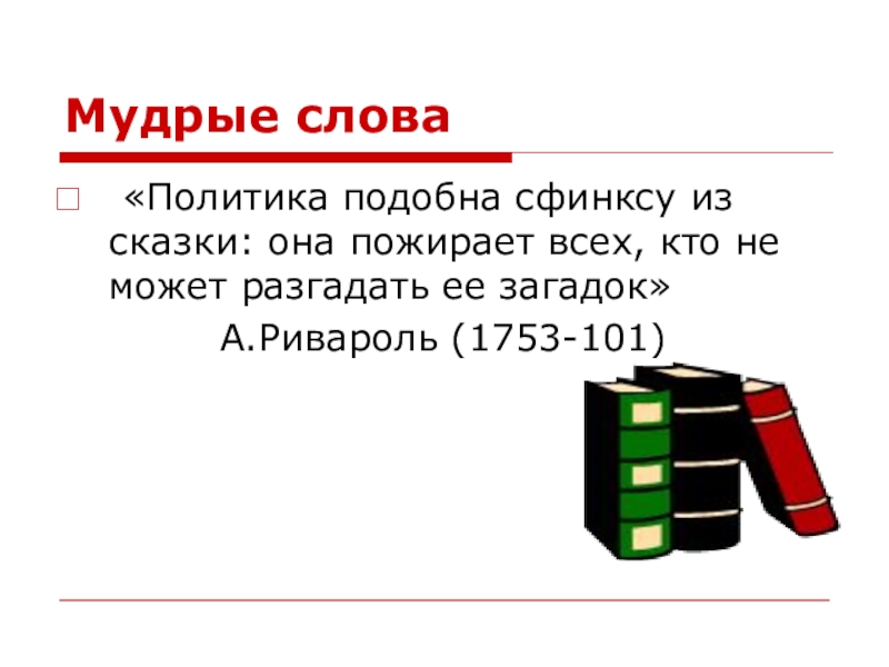 Мудрые слова «Политика подобна сфинксу из сказки: она пожирает всех, кто не может разгадать ее загадок»