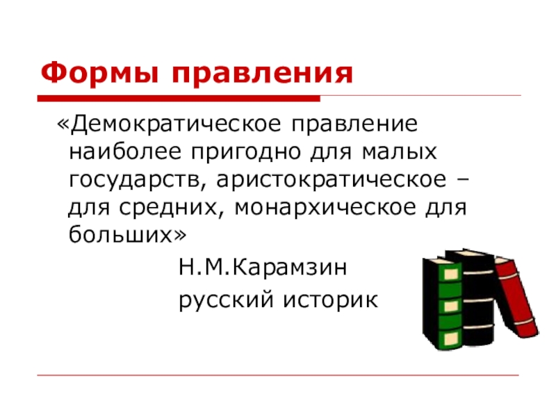 Формы правления «Демократическое правление наиболее пригодно для малых государств, аристократическое – для средних, монархическое для больших»
