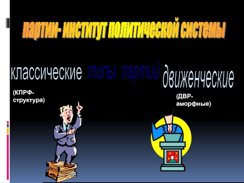 типы партий (КПРФ-структура)партии- институт политической системы (ДВР-аморфные)