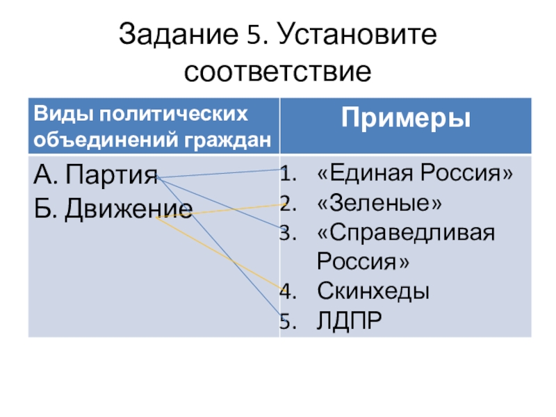 Слайд 7Задание 4. Назовите отличия политического движения от партии