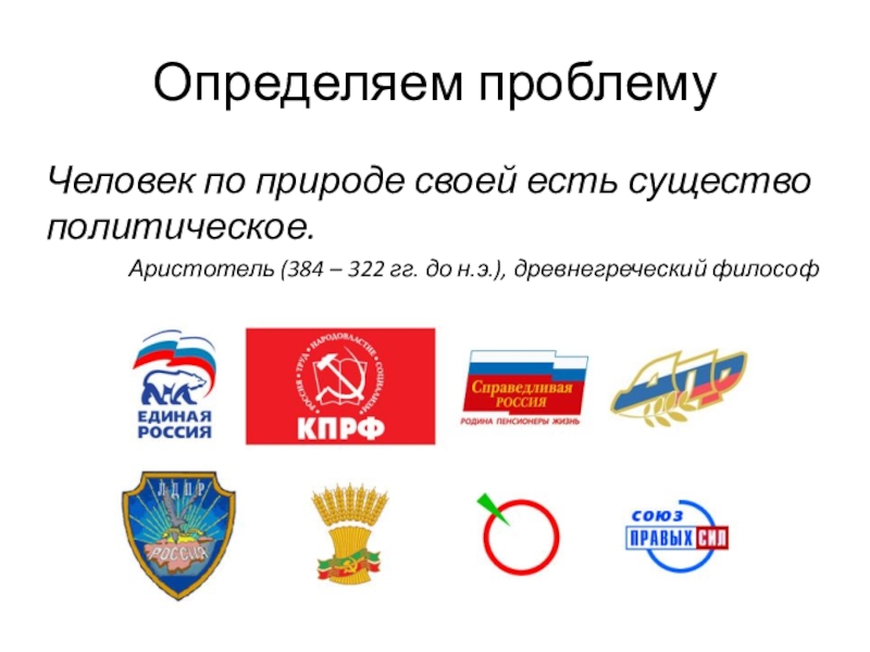Определяем проблемуЧеловек по природе своей есть существо политическое.Аристотель (384 – 322 гг. до н.э.), древнегреческий философ