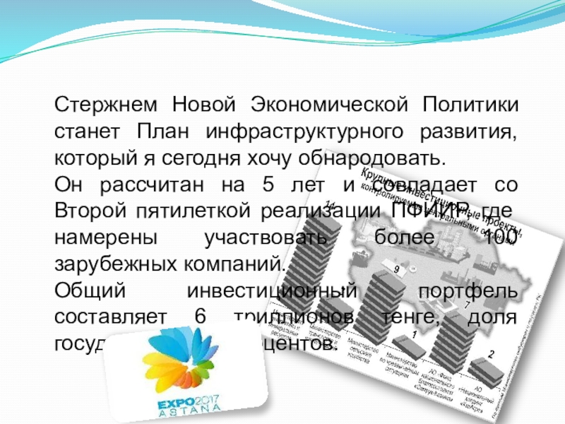Слайд 6Стержнем Новой Экономической Политики станет План инфраструктурного развития, который я сегодня