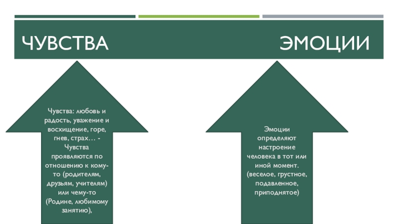 Чувства: любовь и радость, уважение и восхищение, горе, гнев, страх… - Чувства проявляются по отношению к кому-то (родителям, друзьям, учителям) или чему-то (Родине, любимому занятию),
