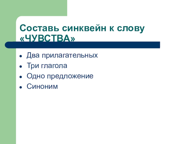 Слайд 14Составь синквейн к слову «ЧУВСТВА»