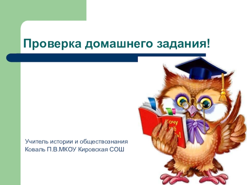 Проверка домашнего задания!Учитель истории и обществознания Коваль П.В.МКОУ Кировская СОШ