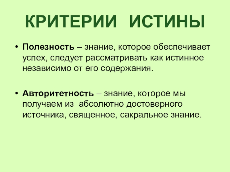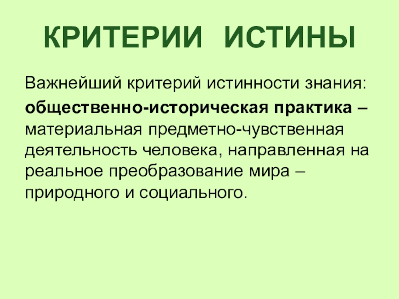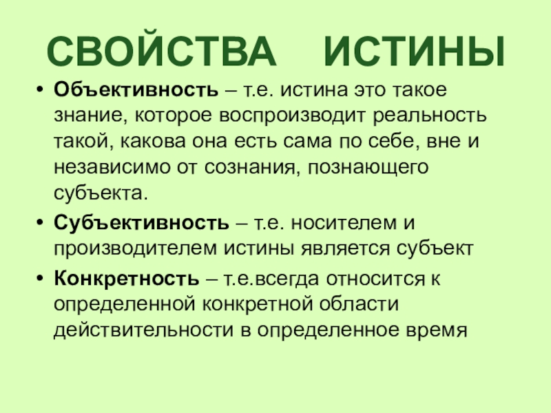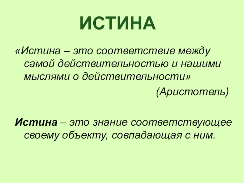 Объективная истина – знание, соответствующее реальности