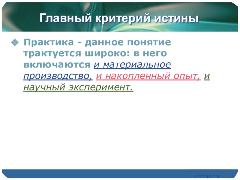 За истинное принимаются теоретически обоснованные знания, когда по законам логики из неких общих посылок (аксиом) выводятся все прочие суждения.