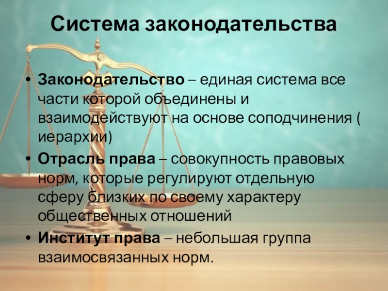 Законодательство – единая система все части которой объединены и взаимодействуют