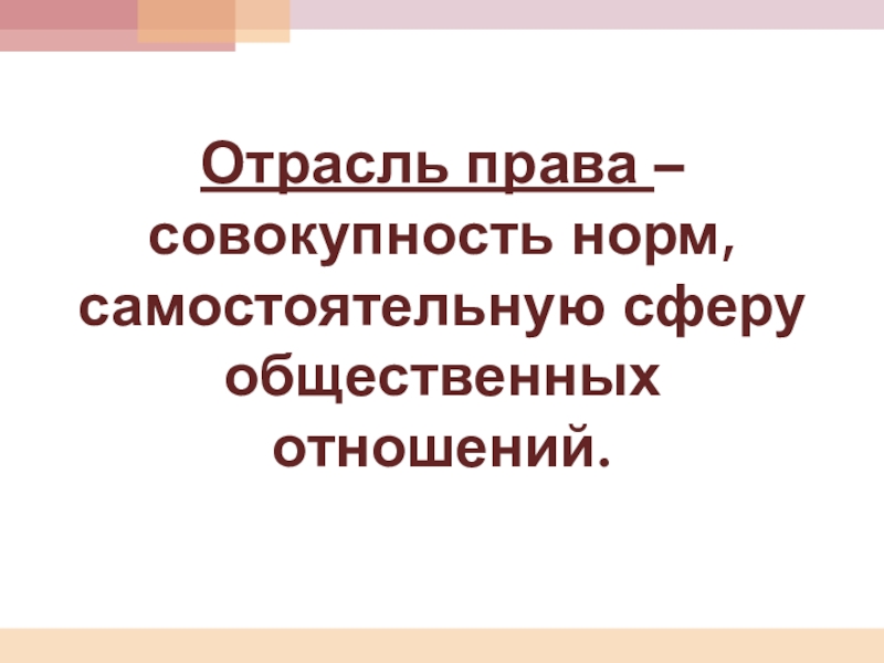 Слайд 11Отрасль права – совокупность норм, самостоятельную сферу общественных отношений.