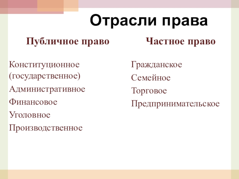 Отрасль права – совокупность норм, самостоятельную сферу общественных отношений.