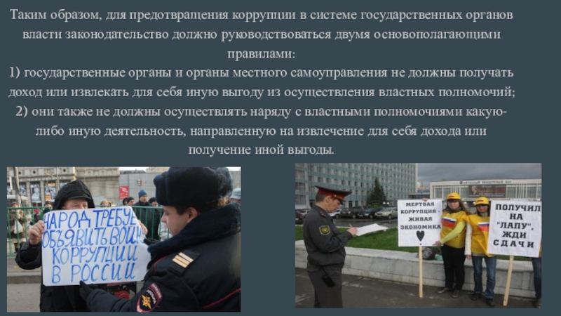 Слайд 25Таким образом, для предотвращения коррупции в системе государственных органов власти законодательство
