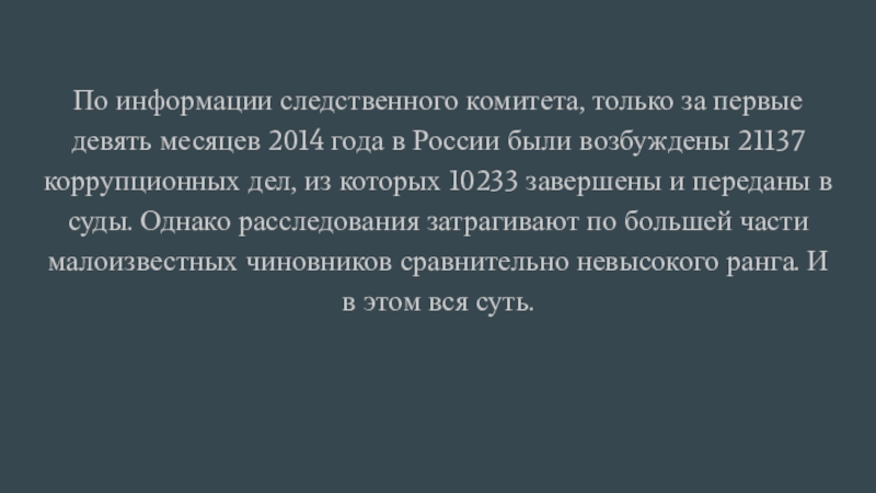 Слайд 19По информации следственного комитета, только за первые девять месяцев 2014 года