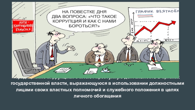 Слайд 4Традиционно коррупцией считают преступную деятельность в органах государственной власти, выражающуюся в