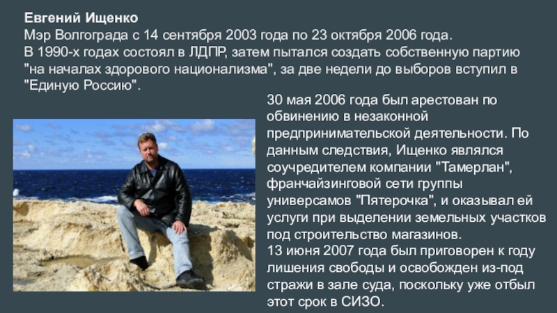 лозунгом "Против жуликов и воров" и отказавшись сойти с дистанции, уступив дорогу представителю "Единой России" Якову Якушеву. Стал единственным в стране оппозиционным мэром крупного города. Впоследствии примкнул к партии "Гражданская платформа".