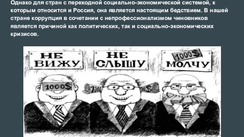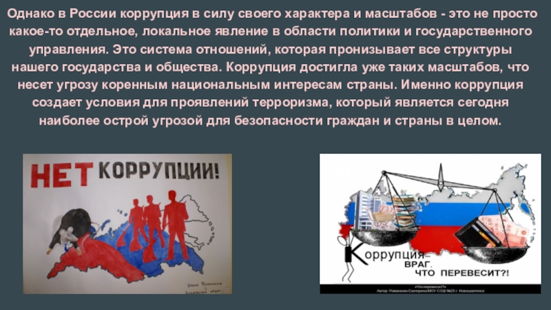 Слайд 5Однако в России коррупция в силу своего характера и масштабов -