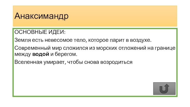 Материя- то из чего сделан наш мир, сама по себе она не может ни исчезнуть, ни переродиться, так как инертна. Аристотелем созданы понятия времени и пространства. Он обосновал философию как систему знаний науки.