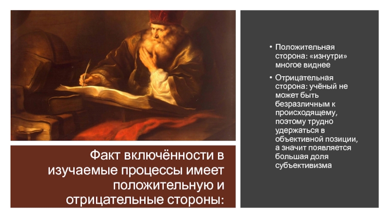 Исследователь может приближаться к истине путём добросовестного изучения фактов в их связи и обоснованного их объяснения, но должен воздерживаться от оценки, так как она всегда субъективна