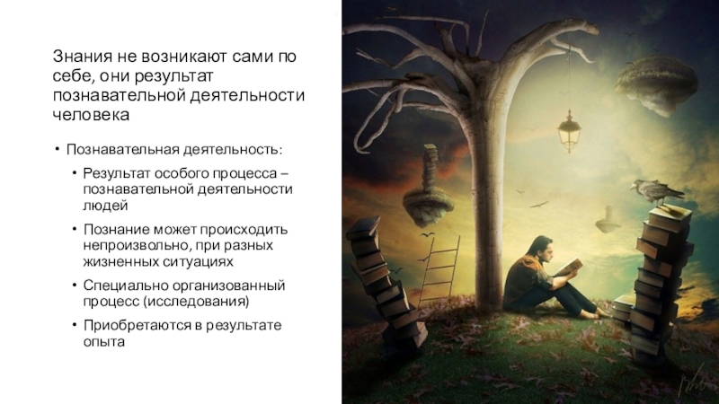 Слайд 16Знания не возникают сами по себе, они результат познавательной деятельности человека