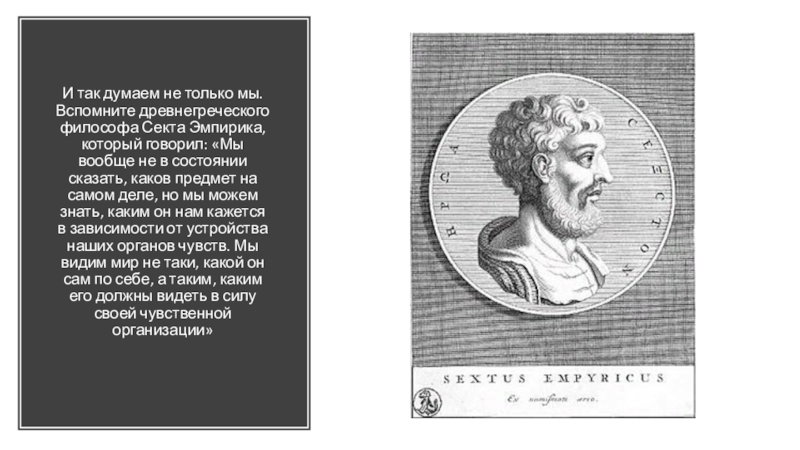 Слайд 10И так думаем не только мы. Вспомните древнегреческого философа Секта Эмпирика,