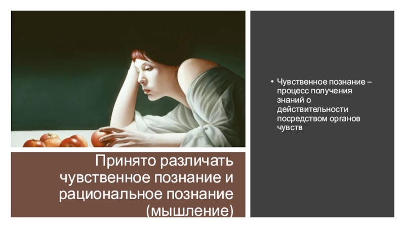 Слайд 18Принято различать чувственное познание и рациональное познание (мышление)