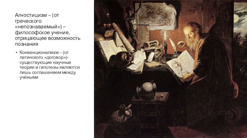 Слайд 14Агностицизм – (от греческого «непознаваемый») – философское учение, отрицающее возможность познания