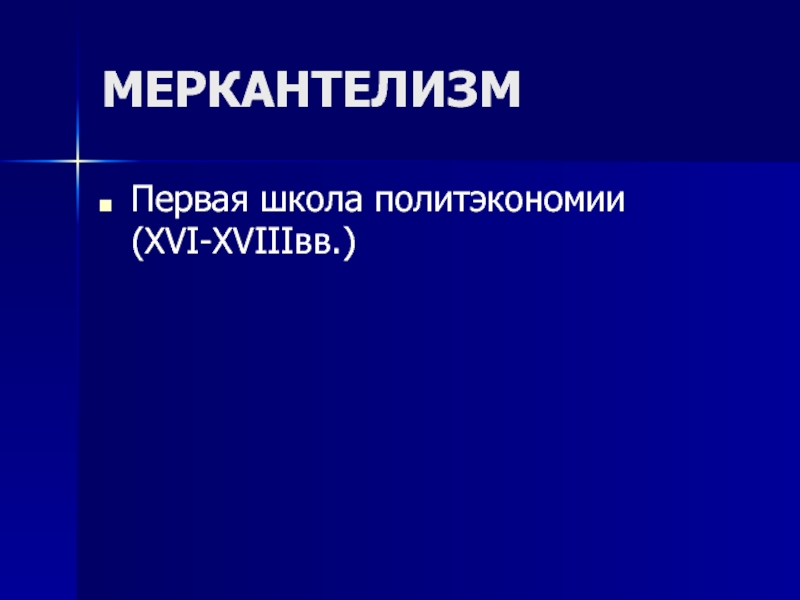 МЕРКАНТЕЛИЗМПервая школа политэкономии (XVI-XVIIIвв.)