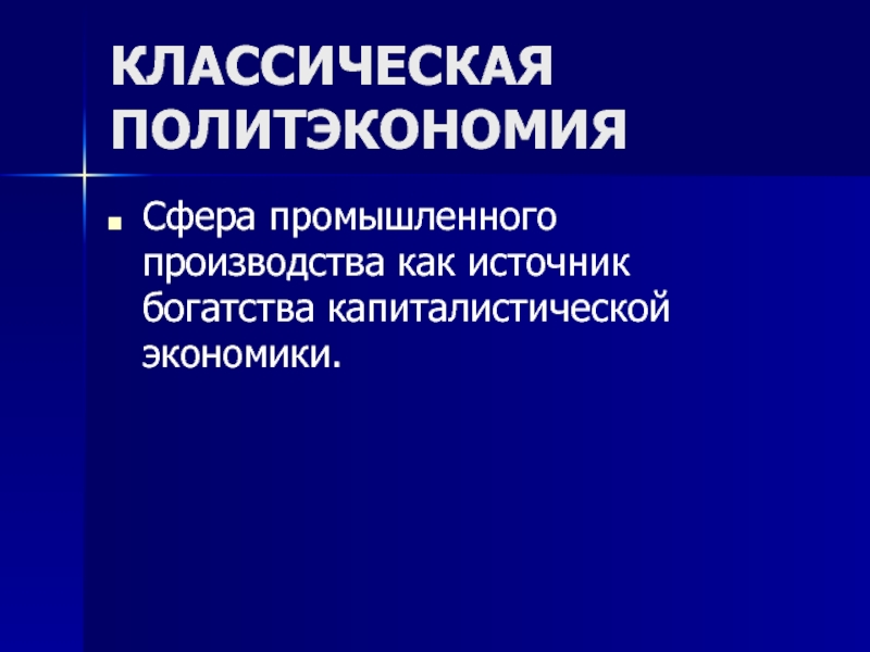 КЛАССИЧЕСКАЯ ПОЛИТЭКОНОМИЯСфера промышленного производства как источник богатства капиталистической экономики.