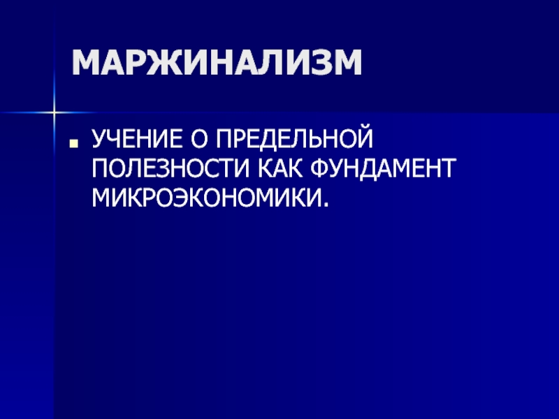 МАРЖИНАЛИЗМУЧЕНИЕ О ПРЕДЕЛЬНОЙ ПОЛЕЗНОСТИ КАК ФУНДАМЕНТ МИКРОЭКОНОМИКИ.
