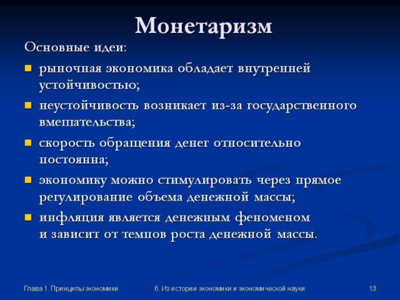 макроэкономическая теория, согласно которой количество денег в обращении является определяющим фактором развития