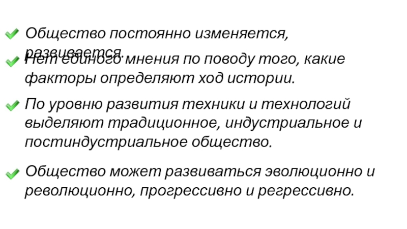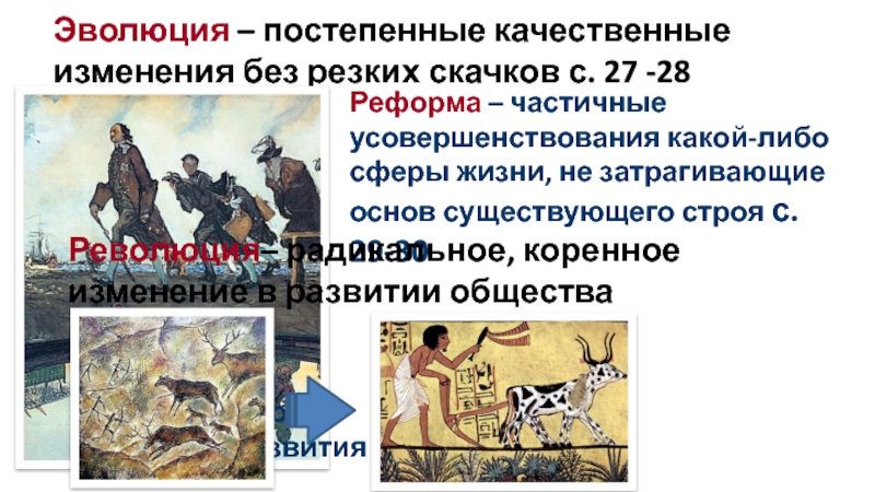 Общество может развиваться эволюционно и революционно, прогрессивно и регрессивно.